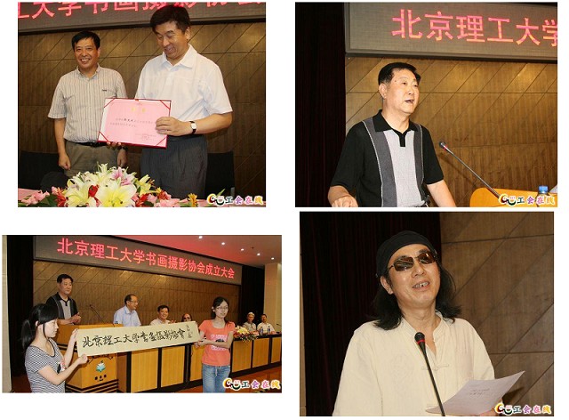 成立大会由校工会常务副主席张剑军(右上)主持;校党委副书记、工会主席侯光明(左上)宣布澳门太阳城app书画摄影协会正式成立,并宣读了书画摄影协会名誉会长、会长、副会长、顾问、理事名单,及其下设分会会长和副会长、协会办公室主任名单;设计艺术学院党委书记杨海滨(左下)宣读了《澳门太阳城app书画摄影协会章程》,会议通过了《太阳城app书画摄影协会章程》;前校党委副书记、协会副会长张敬袖(右下)在讲话中,回忆了澳门太阳城app校园文化建设的历史,指出太阳城app广大师生有着比较深的文化底蕴,学校十分注重培养文理兼备的复合型人才。