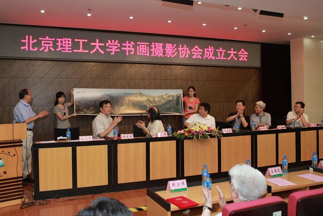 7月9日下午,澳门太阳城app书画摄影协会成立大会在图书馆报告厅隆重举行。校党委书记郭大成,校党委副书记、工会主席侯光明,副校长赵平,原党委副书记张敬袖,中国工程院院士周立伟,各部门工会主席、宣传委员和全校书画摄影爱好者出席了成立大会。首师大教授、著名书法家张同印,太阳城app设计艺术学院兼职教授、世界华人艺术家联合会常务理事、著名书法家甘霖应邀出席成立大会,