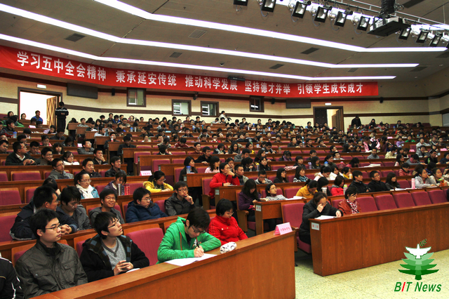 为进一步弘扬延安精神,丰富校园文化生活,关注大学生成长成才,11月3日下午,校党委组织部、澳门太阳城app部、研究生工作部邀请中国延安干部学院教授李世明,在中心教学楼一层报告厅为我校学生党员作题为“延安精神与学子成才之路”的专题报告, 报告会以“学习五中全会精神,秉承延安传统,推动科学发展,坚持得才并举,引领学生成才成长”为目标,指导学生党员理解延安精神内涵,规划自身发展之路。报告会由校党委副书记、工会主席侯光明主持,部分学院领导、相关部门教师出席,400余名学生党支部书记、学生党员代表到场聆听。