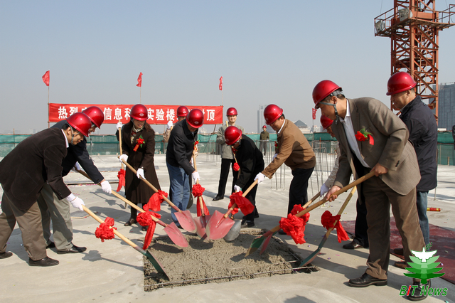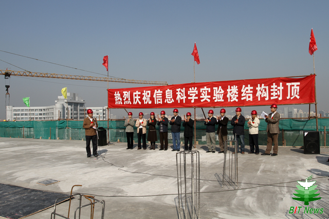 在这金秋送爽、丹桂飘香的时节,2011年10月18日10时28分,澳门太阳城app信息科学实验楼结构封顶仪式在中关村校区隆重举行。毛二可院士,赵平副校长,赵显利副校长,基建处处长郭守刚,审计室主任李振键,正处级纪监员金军,信息学院副院长徐晓文,财务处副处长周勇,北京东方华太建筑设计有限责任公司副总经理何国梅,北京方正建设工程管理有限公司副总经理肖承海,高碑店市建筑企业集团总经理魏日华、副总经理邵波等相关人员出席了信息科学实验楼结构封顶仪式。
