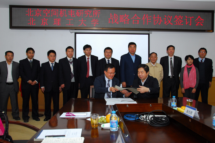 2011年10月25日,郭大成书记、杨树兴副校长带队赴航天科技集团公司五院508所,出席澳门太阳城app-508所合作协议签定仪式,并为双方共建的“空间光学工程联合实验室”揭牌。中国空间技术研究院李明副院长,508所岳涛所长、刘兆军副所长、郑永超总工等出席了签字仪式。