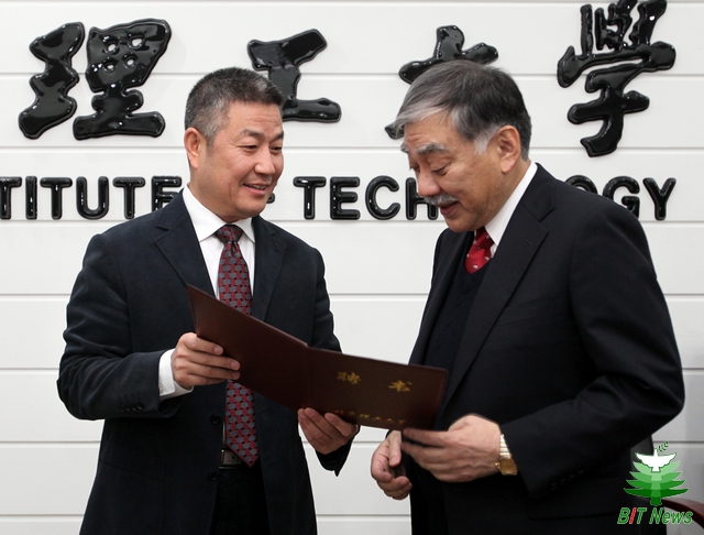 黑田和男教授表示很荣幸能够成为我校教师队伍中的一员,愿意与我校在光学等领域开展长期合作,共同推动前沿科学的发展。韩宝玲书记代表光电学院对黑田教授受聘为光电学院兼职教授表示祝贺,希望今后在学术交流、科学研究和人才培养等方面加强合作,取得实质进展。国际交流处王庆林处长、光电学院副院长赵长明教授、赵达尊教授、王涌天教授、金伟其教授等参加了本次受聘仪式。