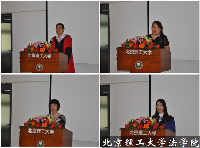 到场的领导和嘉宾有: 法学院院长曲三强、党委书记徐强、副院长张艳丽、副书记副院长张巍、法学院优秀毕业校友房山区司法局副局长王媛,法学院团委书记聂宁宁以及法学院的教师代表和全体2012届本科生、法律硕士研究生,会议由副书记副院长张巍主持。