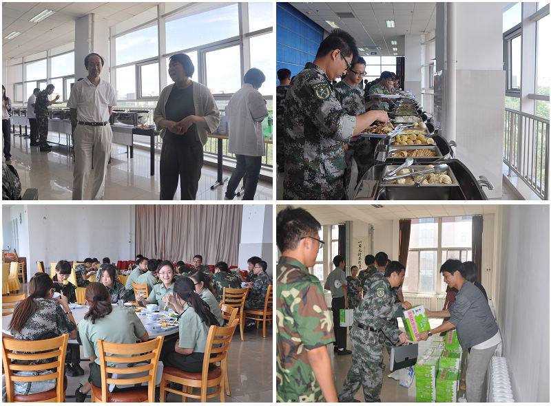 9月12日中午,基础教育学院党委书记王悦音、常务副院长张青山、副院长程杞元一行代表基础教育学院于良乡校区南食堂三层慰问了军训旅全体带队干部,并为带队干部准备了丰盛的自助午餐。
