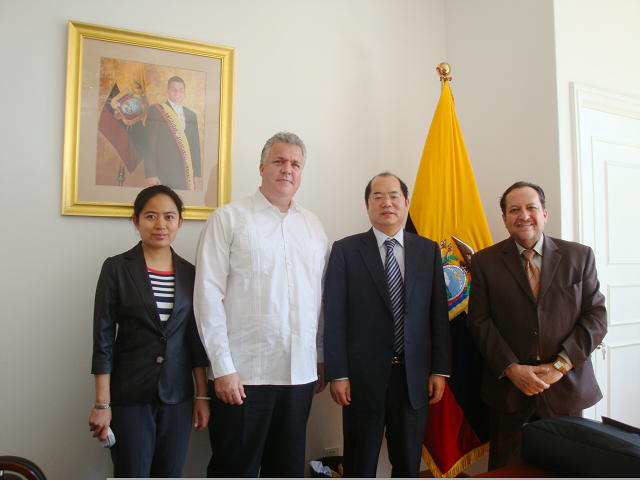 9月12日上午, 应厄瓜多尔驻华公使阿尔瓦罗·加尔西亚邀请,我校国际交流合作处处长王庆林、项目官员毛宇峰访问了厄瓜多尔驻华大使馆,与同莱昂纳多·阿里萨加大使和阿尔瓦罗·加尔西亚公使举行了会谈。