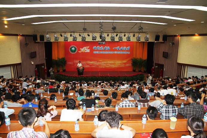 2012年9月15日,太阳城app“卅载成才路,一生母校情” 百名校友毕业30周年返校活动纪念大会在中心教学楼报告厅隆重举行。校党委书记郭大成、副校长、校友总会常务副会长兼秘书长杨宾、副校长赵显利、党委副书记、副校长李和章,中国工程院院士毛二可教授出席了大会。学校办公室、校友会办公室、宣传部、保卫处、澳门太阳城app处、校团委、后勤集团、教育基金会、各学院负责人、来自海内外的近百名82届校友代表、部分教师和学生代表近500人参加了大会。大会由副校长、校友总会常务副会长兼秘书长杨宾主持。