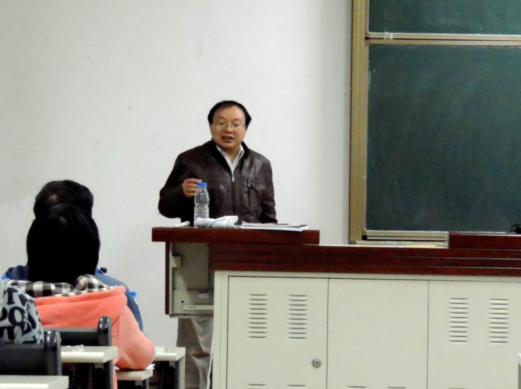 会上,首先姚裕贵教授介绍了物理学院与中科院物理所合作培养新生的英才班,并展示了物理学院与中科院物理所合作的一些基本情况。接着,汪卫华教授在为同学们详细介绍物理所基本情况的同时,为大家介绍了物理所现今的研究项目,着重介绍了凝聚态物理方面的研究,以此激发同学们学习物理的兴趣。