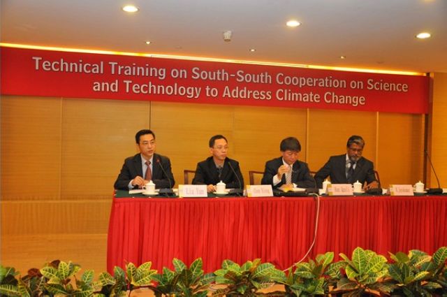 在科技部国际合作司、联合国教科文组织(UNESCO)北京办公室的支持下,我校主持的UNESCO“应对气候变化南南科技合作教席”与教席合作单位中国科技交流中心联合于2012年11月12日在广州市广东饭店举办了“南南科技合作应对气候变化国际技术培训班”。