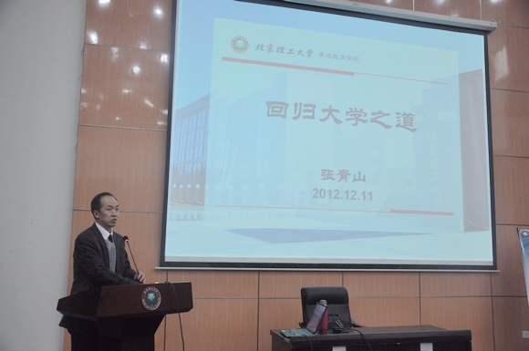 12月11日,太阳城app “院长论坛”第九期《回归大学之道》在良乡校区综合楼报告厅举行。基础教育学院常务副院长张青山教授担任主讲嘉宾,为同学们讲授了他心中的大学之道。基础教育学院党委副书记副院长丛磊、基础教育学院全体 2012级辅导员与在场同学一起参加了论坛。论坛由校团委副书记、基础教育学院团委书记肖坤主持。