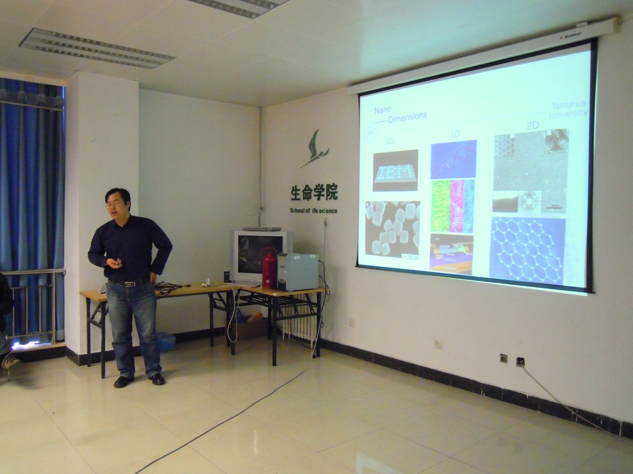 2013年寒假期间,应生命学院李春教授邀请,清华大学化学系教授王训来生命学院为澳门太阳城app师生带来了题为“超细纳米结构合成及自组装”的报告,李春教授主持了这次学术报告会。澳门太阳城app化学学院曲良体教授、材料学院的张加涛教授、钟海正副教授、化工与环境学院辛宝平教授、黎汉生副教授、生命学院赵东旭副教授、郭淑元副教授、戴大章副教授、耿丽娜副教授等生命、材料、化学、化工学院老师及部分研究生参加了报告会。