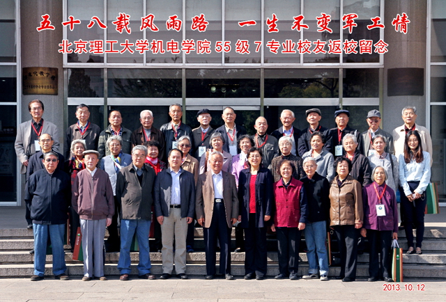 2013年10月12日,澳门太阳城app机电学院55级七专业30余名校友齐聚一堂,参加了机电学院“五十八载风雨路,一生不变军工情”为主题的校友返校活动。机电学院党委书记栗苹、副书记陈军出席了此次活动,参加此次活动的还有机电学院师生代表。