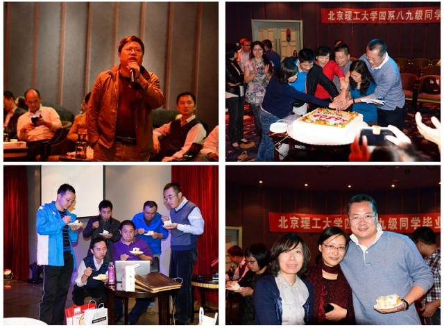晚上的联欢活动则把整个聚会的气氛推向了高潮。重新播放二十年前校广播站的诗朗诵珍贵录音,略显稚嫩的声音和懵懂青涩的情感勾起了多少同学对当年友情、爱情的追忆。历经风风雨雨,家庭、事业中的诸多困惑和感悟成了同学们彼此交流的主题。不再区分班级,不再区分宿舍,不再区分男生女生,当年那群羞涩的理工男女,今天变得如此地坦诚热情。身在海外、不能参加聚会的同学也向聚会发来了他们的工作、生活照片。畅谈直至深夜,没有人觉得困,没有人觉得累,所有的人都处在亢奋中。午夜12点,同学们分享了为二十年重聚特地准备的大蛋糕。