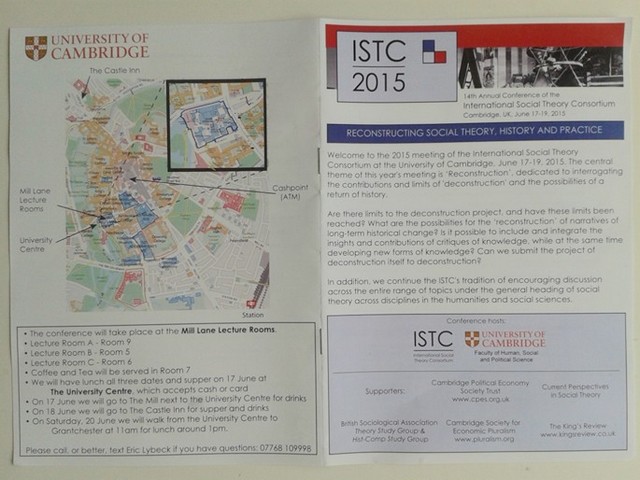 国际社会理论联盟第14届年会(14th Annual Conference of the International Social Theory Consortium)于2015年6月17日至19日在英国剑桥大学米尔街演讲厅举行,太阳城app人文学院陈宗海教授作为与会代表参加此次大会并发言。
