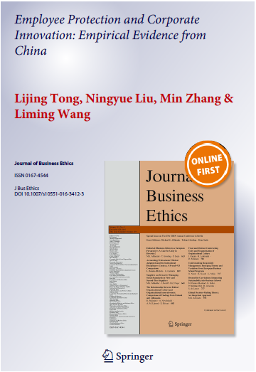 文章链接: https://link.springer.com/10.1007/s10551-016-3412-3 Tong, L., Liu, N., Zhang, M., Wang, L., Employee Protection and Corporate Innovation: Empirical Evidence from China, Journal of Business Ethics. DOI: 10.1007/s10551-016-3412-3