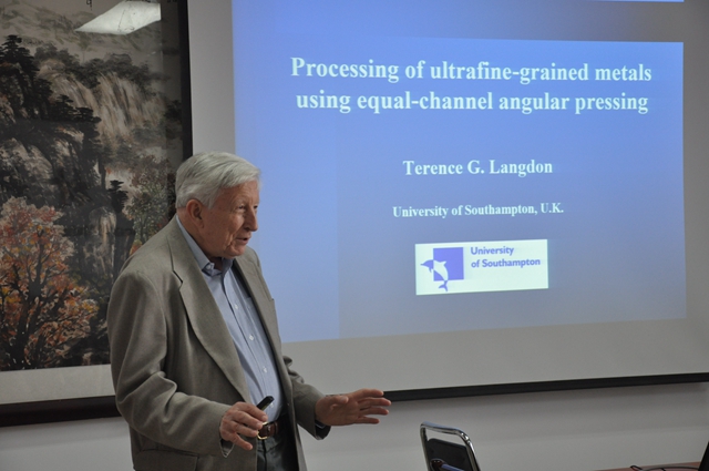 4月10号下午,Langdon教授在5号楼502会议室作题为“Processing of ultrafine-grained metals using Equal-channel angular pressing”的报告,详细介绍了剧烈塑性变形等通道角挤压(ECAP)技术的研究进展和学术成果,并与参会师生进行了深入的交流和讨论。