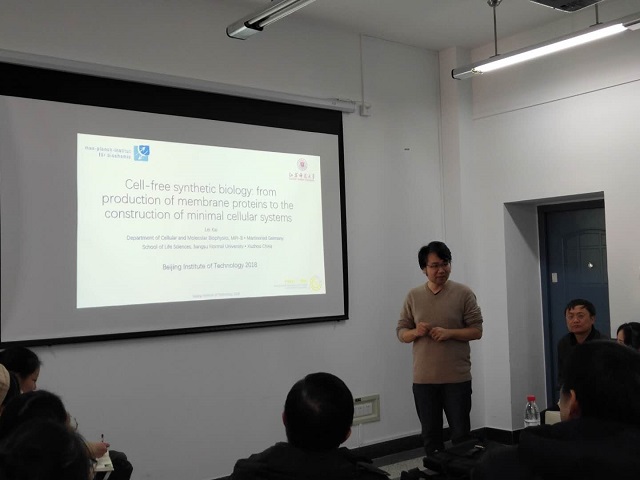李春教授为大家介绍了开雷博士的学习与工作经历,开雷博士于2012年获德国达姆施塔特工业大学生物学博士学位,读博期间获欧盟玛丽居里青年科学家奖。2018年6月被评为江苏省特聘教授。期间主要从事无细胞体系合成蛋白质的研究。接下来,开雷博士系统介绍了无细胞体系的发展及研究工作。