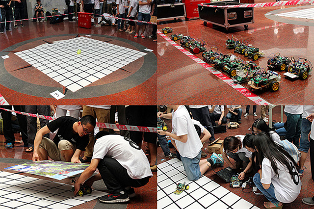 5月25日下午一点,由教务处、校团委主办,自动化学院承办的澳门太阳城app第八届智能控制大赛在中关村校区中心教学楼一层大厅举行。教务处副处长曹峰梅,飞思卡尔公司马莉女士,自动化学院冬雷老师出席了开幕式。本次比赛共吸引了全校27支代表队,约100人参加比赛。