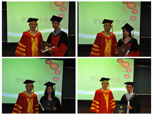 典礼结束后的学位授予仪式上,学院院长兼学院学位委员会主席胡长文教授为全体毕业生授予了学位,并同每一位毕业生合影留念。