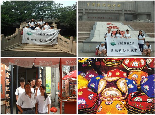在社会调研方面,队员们围绕社会热点问题,纷纷提出奇思异想,实践队课题各不相同,或家乡经济发展,或社会现象分析,或各地不同文化特色等等,内容精彩纷呈,形式多样。其中“北京市生态村考察团”以“北京郊区周边生态村建设情况调研”为课题,以走访、观察、问卷等形式,对北京市房山区韩村河镇韩村河村和北京市房山区窦店镇河口村两个新农村进行了为期4天的实践调研活动,详细了解了两个村的情况,为生态村建设献策献力;“BIT环保小分队”团围绕“倡导垃圾分类,实现资源化处理”主题,在北京市房山区和海淀区展开主要针对垃圾分类现状及其处理问题的深入调查,深入浅出的分析各类垃圾处理问题;“BIT之星”实践团则针对大学生村官的发展现状进行相关调研活动;“纪佳骅赴山东威海社会实践团”则针对食品安全问题,以山东省威海市为代表,探究海产品加工现状及消费者对加工海产品的看法与前景展望;“六扇门”团队突发奇想,有机结合良乡和中关村等两地情况,从地域的不同来调查消费者售后服务体系的差异,并形成一系列调研成果。