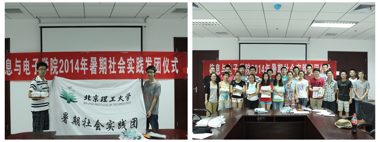 信息与电子学院2014年暑期社会实践于5月份启动,积极面向各级学生组织和全体同学进行动员,宣传社会实践活动;开创预申报工作制度,组建学院暑期社会实践工作小组,对各实践团的预立项信息进行审核,返回修改意见,各实践团进行修改完善后在校团委系统中完成正式申报工作。信息与电子学院2014年暑期社会实践成功立项多达122项,达历史新高。此外,学院还积极组织实践团员参加暑期社会实践培训,针对开展实践活动的方式方法、报告撰写等方面对实践团员进行辅导。7月4日,信息与电子学院召开发团仪式,介绍社会实践总体情况和筹备工作,指导教师、实践学生代表交流发言,对实践团队进行动员、授旗,发放实践物资。