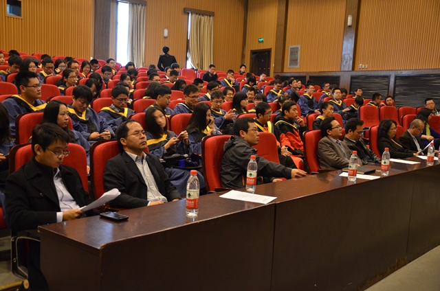 优秀毕业生甘超同学代表全体毕业生发言。甘超同学表示,老师们顽强拼搏、真诚奉献、追求卓越的光辉事迹,让同学们深受鼓舞;老师们严谨的治学态度、高深的学术造诣、勤奋的工作精神,让同学们受益终身。全体毕业生将不忘理工人刻苦钻研的精神,为实现中华民族伟大复兴的中国梦继续努力奋斗!最后他代表全体毕业生表达了对老师们的衷心感谢和崇高敬意,对学校和学院的真诚祝福。