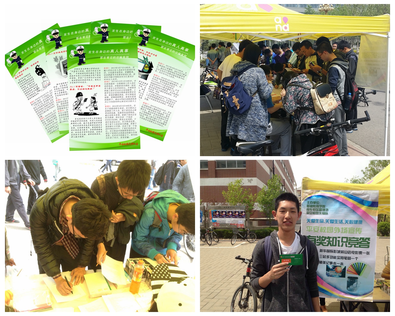 4月21日,基础教育学院、良乡校区管理处、平安校园先锋队在良乡校区联合举办“关爱生命、关注生活、关心健康”平安校园宣传教育活动。