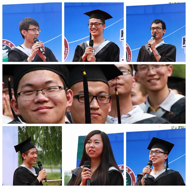 接下来,毕业典礼的主角——2015届的毕业生们,每个人走到台上,表达自己此时此刻的所感所想:欣赏、感谢、留恋、希望、祝福……曾经难啃的数学物理方法课大家印象深刻;宿舍里的绰号“暗语”在这里又被唤起;深深的鞠躬表达着对学校和老师的感谢;在北湖毕业这个瞬间,这画面被深藏在心里……
