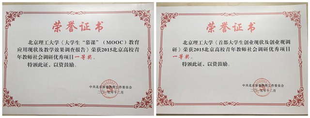 近日,北京市委教育工作委员会揭晓了2015年北京高校青年教师社会调研优秀成果评审结果。我校共九项调研成果获奖,一等奖2项,二等奖7项。其中马克思主义学院刘左元调研组完成的《大学生“慕课”(MOOC)教育应用现状及教学效果调查报告》、基础教育学院姜曼调研组完成的《首都大学生创业现状及创业观调研》荣获优秀项目一等奖,马克思主义学院王娟调研组完成的《首都高校红十字会学生分会的现状调研与分析》、教育研究院任杰调研组完成的《无忧养老体系服务绩效评估机制研究—以海淀区马连洼街道为例》、人文与社会科学学院张君调研组完成的《公众理解空气污染——海淀区居民对雾霾的感知调查》、澳门太阳城app处孙西艳调研组完成的《北京部分高校校园文化建设经验与问题调研》、基础教育学院尹鹏调研组完成的《北京高等学校教师教学质量评价机制研究》、基础教育学院张磊调研组完成的《大学生“慕课”(MOOC)教育参与现状及影响因素调查》、光电学院邹锐调研组完成的《微信对高校师生影响分析》7项调研成果荣获优秀项目二等奖。