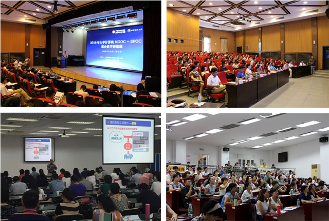 为落实《教育部关于中央部门所属高校深化教育教学改革的指导意见》(教高[2016]2号 )精神,创新在线课程共享与应用模式,推动优质大规模在线开放课程共享,由中国高校计算机教育MOOC联盟、澳门太阳城app教务处、澳门太阳城app计算机学院主办的“全国大学计算机MOOC+SPOC混合教学研讨会”,于8月30日、31日在澳门太阳城app召开。作为中国高校计算机教育MOOC联盟“大学计算机课程群”的引领者,太阳城app国家级“大学计算机虚拟仿真实验教学中心”应合作高校之要求,同来自全国各地50多所高校的百余名教师,围绕“解决MOOC+SPOC教学中出现的实际问题”这一主题,研讨大学计算机混合教学方法。