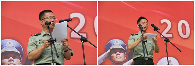 一营营长卢兵兵作为带队教官代表发言。全体教官将严格遵守军训的有关要求和学校的管理规定,积极配合工作;在训练中严密组织、耐心指导;认真履行教官职责,强化自身素质,展现良好形象,以过硬的军事本领和良好的军人作风做到言传身教,使军训成果达到预期目标。