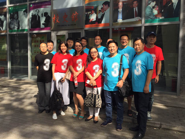 从校史馆里缓缓走出,还还沉浸在对沧桑历史和母校发展感叹中的校友们,立即被熟悉又陌生的校园风景吸引。九月上旬的校园生意盎然,鸟语花香,时隔二十五年,重返校园,踏上同一片土地,穿上校友文化衫,流连于同一条林荫大道,校友们犹如回到十八岁,而一幢幢拔地而起的教学楼又将大家拉回现实。在校园内中心教学楼前合影留念后,大家于延园餐厅就餐。