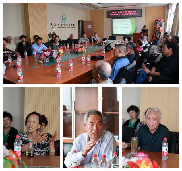 纪念大会上,娄秀红代表学院表达了对校友们返校的热烈欢迎,并向校友介绍学院发展状况、学科建设、科研成果、人才培养、“十三五”发展目标等方面。在师生交流环节,文841班班长马宵立代表校友进行发言,表达了对学院培养的感谢和对母校的祝福。原社科部主任单书岩作为教师代表发言,他非常激动地表扬校友们对国家建设做出的贡献。文841班班主任张蔼萍老师代表校友们向学院和老师们返校活动的精心组织表示感谢。时任文851班班主任、原人文学院副院长宋桂芝、任课教师汪孟颖、魏发辰等老师也通过短信等其他方式向各位校友表达亲切关怀和温馨祝福。人文学院校友带着激动与喜悦之情,共叙师生情谊,贺母校七十六岁华诞。学院领导与校友代表互赠纪念品。会后学院领导、老师与校友合影留念。