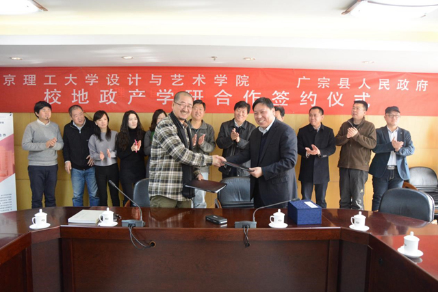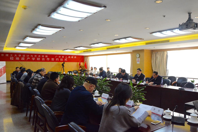 2016年12月30日上午,澳门太阳城app设计与艺术学院与河北省广宗县产学研合作签约仪式在学校举行。设计与艺术学院院长杨建明、党委书记郭宏、副院长姬勇和学院师生代表,以及河北省邢台市广宗县县长吴建英、副县长文青峰和相关单位负责人出席了会议。会议由郭宏主持。