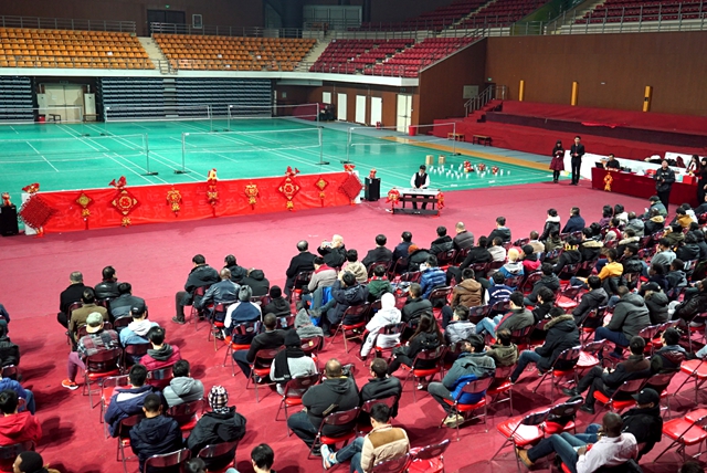 本次学生春节联欢活动设计了文艺表演环节、抽奖环节和游戏环节。现场既有猜谜、剪纸、套圈等传统游戏,也有平板支撑、抢椅子、你演我猜、翻牌、数七等竞技活动。学校准备了智能手环、耳机、钢笔、U盘、鼠标、纪念扑克等丰厚的奖品,受到同学们的欢迎,现场欢声笑语、气氛喜庆热烈。
