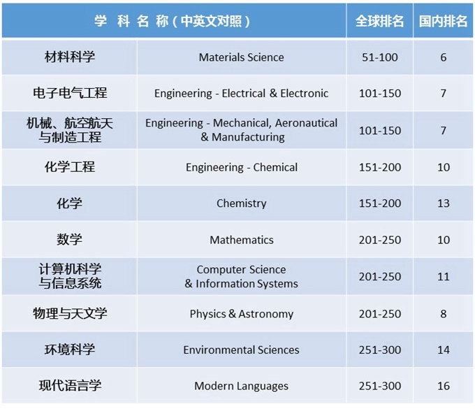 太阳城app共有10个学科上榜,上榜学科数位列全国高校第22位。材料科学进入全球百强,国内位列第6;电子电气工程、机械航空和制造全球排名前150,国内位列第7。