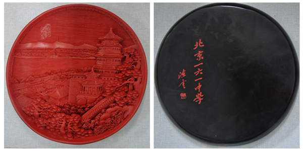 北京一六一中学赠送我校纪念品