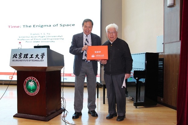 2017年10月14日至10月16日,美国宾夕法尼亚州立大学杨振寰(Francis T. S. Yu)教授对光电学院进行了访问。光电学院院长郝群、副院长杨健、杨亚楠和杨振寰教授进行了会见和交流。