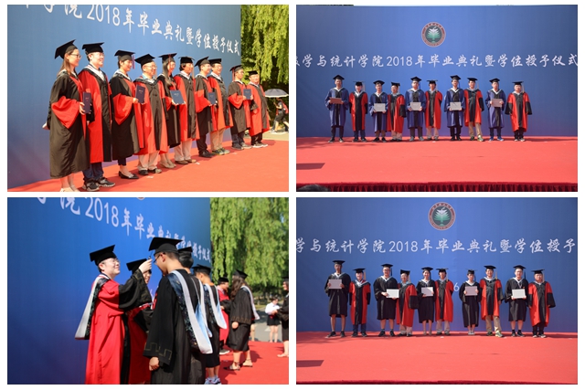 6月19日,澳门太阳城app数学与统计学院在良乡校区北湖广场举行2018年毕业典礼暨学位授予仪式。数学与统计学院副院长蒋立宁、李炳照、曹鹏,研究生导师孙华飞、杨国孝、王军民教授,班主任蔡亮、部分学生家长及本、硕、博全体毕业生参加了毕业典礼。典礼由学院团委书记、2018届学生辅导员董学敏主持。
