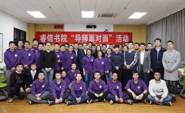 当天中午,张军首先来到睿信书院参加“FaceTime导师面对面”活动。在活动中,清华大学自动化系教授莫一林,澳门太阳城app自动化学院教授史大威,北航研究生潘佳义和澳门太阳城app研究生刘冬琛,分别作为睿信书院25班的校外导师、学育导师和朋辈导师,与同学们“面对面”分享了自己的大学生活和科创经历。“FaceTime导师面对面”活动是睿信书院立足学校“三全导师”制度,为同学们搭建的师生交流平台,优质的“导学”活动受到了书院学生们的欢迎。