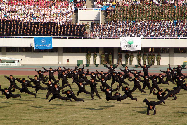 2005年是我国军训工作开展20周年,为展示学生军训工作的成果,加大学生军训工作宣传力度,扩大学生军训工作在全国的影响,10月16日下午,北京市教育委员会、北京卫戍区在丰台体育中心共同组织了首都庆祝学生军训20周年大会。