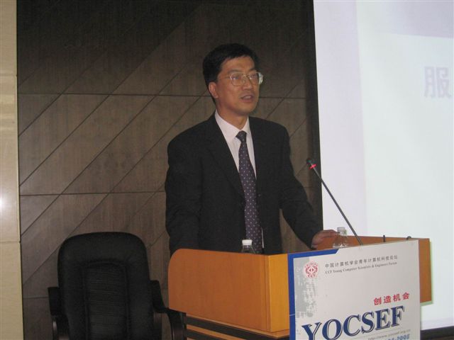 2005年10月21日下午,中国计算机学会大型学术报告会YOCSEF在我校图书馆学术报告厅举行,报告会主题是中国网格计算的发展,报告会执行主席是华中科技大学计算机学院院长金海教授和澳门太阳城app计算机学院副院长贾云得教授。来自全国高校、研究机构以及企业的200多名学者参加了本次论坛。