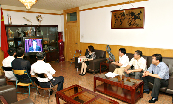 6月30日上午9时,中央庆祝中国共产党成立85周年暨总结保持共产党员先进性教育活动大会在北京隆重举行。中共中央总书记胡锦涛同志发表了重要讲话。图为我校党政领导认真收看现场直播。