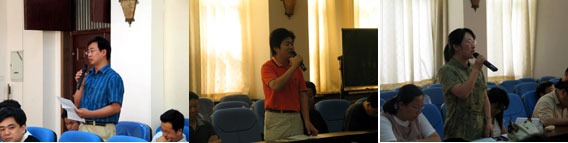 2005年入校青年教师代表车辆工程系王震坡、机械制造及自动化系刘检华和交通工程系赵亚男老师分别就留校工作以来参加科研项目、发表学术论文与班主任工作作交流发言。其余2005年入校青年教师也纷纷发言对自己留校以来工作进行总结。