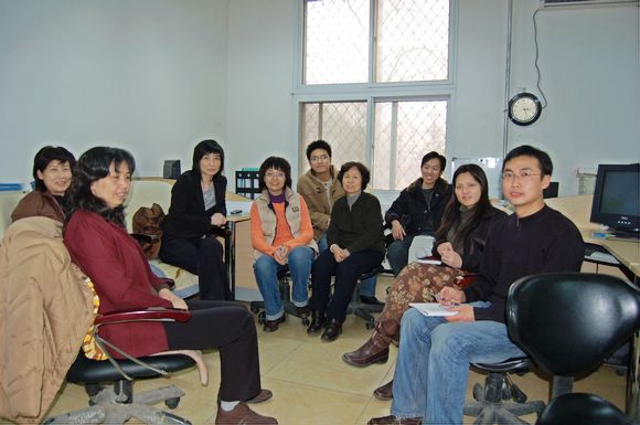 会后各位老师合影留念。从左至右依次为杨福莲老师,邓瑞萍老师,郝群老师,赵满老师,高博老师,胡丽爱老师,杨东朋老师,李君老师,赵志强老师。