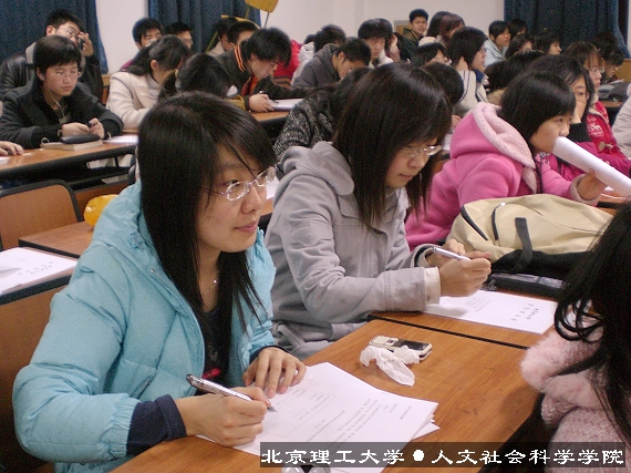 彭明雪老师对2005级同学作了奥运志愿者报名的动员报告。