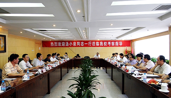 随后,在我校国际教育交流大厦第一会议室,场馆团队领导向汤小泉一行奥组委及中国残联领导就残奥会盲人门球测试赛准备情况进行了工作汇报。场馆团队领导认真听取了考察人员的相关建议,并表示要按奥组委及残联的要求,在完善运动规范、专题培训、安全保障等方面加强工作,从目前到赛前全力以赴,按照高标准、高要求把此次测试赛做好。