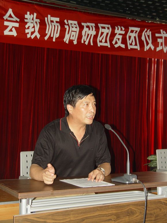 校党委副书记、工会主席侯光明同志作了重要讲话,介绍了校工会、人事处、组织部等部门联合组织此次社会实践调研活动的重要意义,对全体团员提出了要求,希望他们认真参加此次社会实践调研活动,注重实效,取得成果,学习各地厂矿企业、科研院所、高等学校的先进经验,推动学校各项工作的开展。侯书记还强调了加强师德建设和青年教师队伍建设的重要意义,他希望通过此次实践调研活动,能涌现出一批青年教师的骨干分子,为下一步青年教师联谊会的成立奠定坚实基础。会上还举行了授旗仪式,侯书记为各分团授旗,并与团员合影留念。