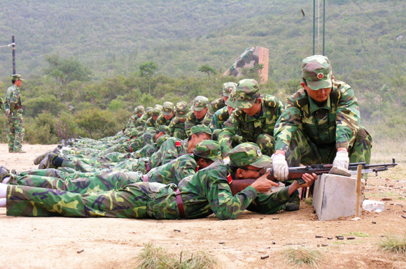 2007年9月13日,军训旅27个连队的军训学员及指导员在八达岭军训基地的后山靶场进行了实弹射击。参加打靶的军训学员共2620人,每人五发子弹,以连为单位15人一组顺序进行。