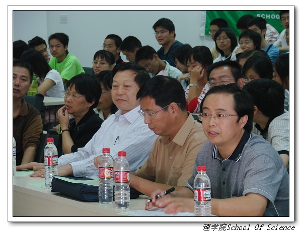 院长胡更开向大家介绍了理学院的整体情况,包括理学院本科生的培养理念与培养方向,理学院的师资力量以及最近理学院各学科科研上取得的一系列成果等,使在座的各位同学深受鼓舞。