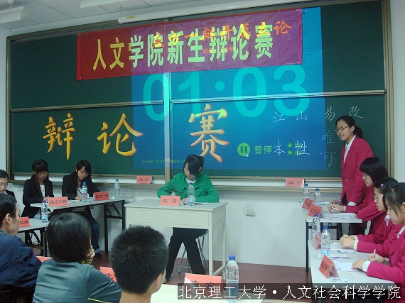 经过良乡校区管理与经济学院、人文学院、设计与艺术学院、外国语学院共同精心策划,在大家的期待中,2007年10月24日晚7点2007级第四学区新生辩论赛首场比赛在良乡校区理科教学楼105拉开帷幕。人文学院分团委副书记李双老师,出席了此次比赛。